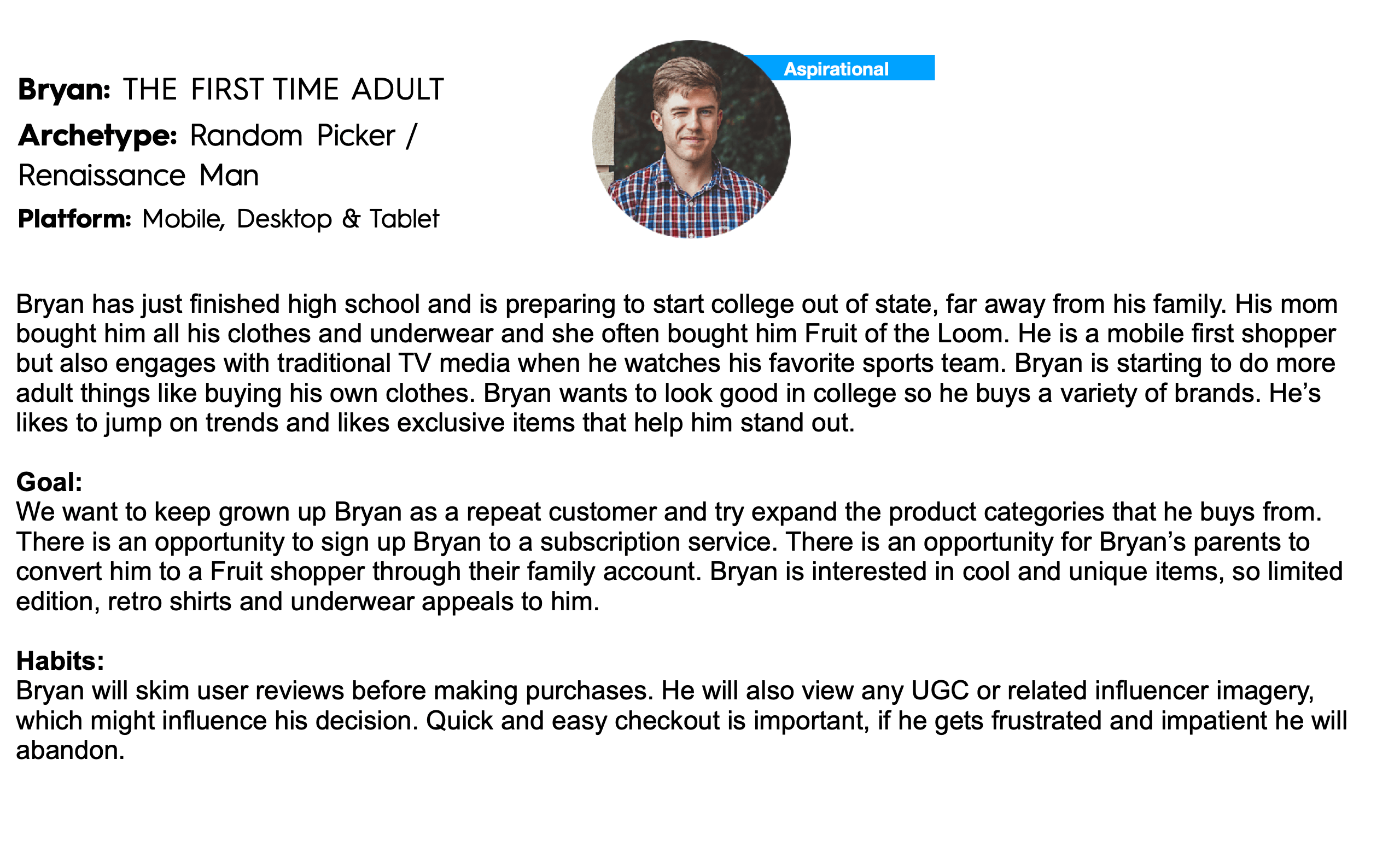 This meeting was a huge success and we learned a lot about Fruit’s brand and core values as well as gain huge insights into the different customers personas they had created through their intensive customer research.