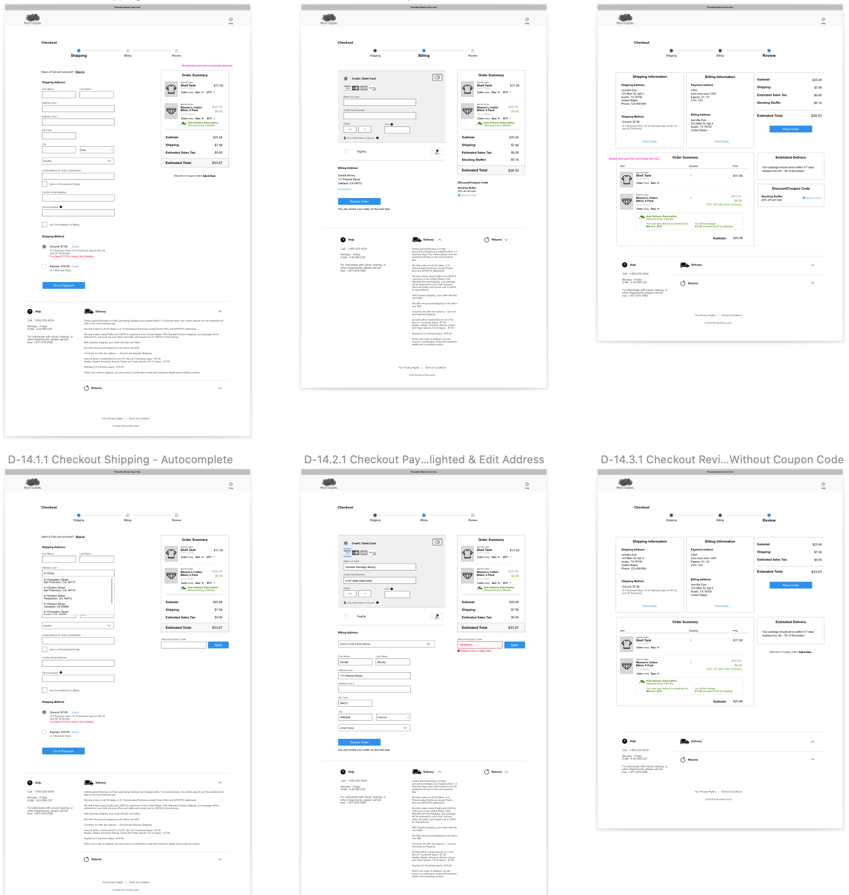 In sprint 5, I designed the cart and checkout pages. This was an intensive sprint as the checkout flow contains many important elements and is very state heavy. The main challenge during this sprint was the subscription checkout process, as users could buy and manage a subscription box of clothes. I had to design out a way for users to add a subscription to their cart and then manage their subscriptions settings in their account page.