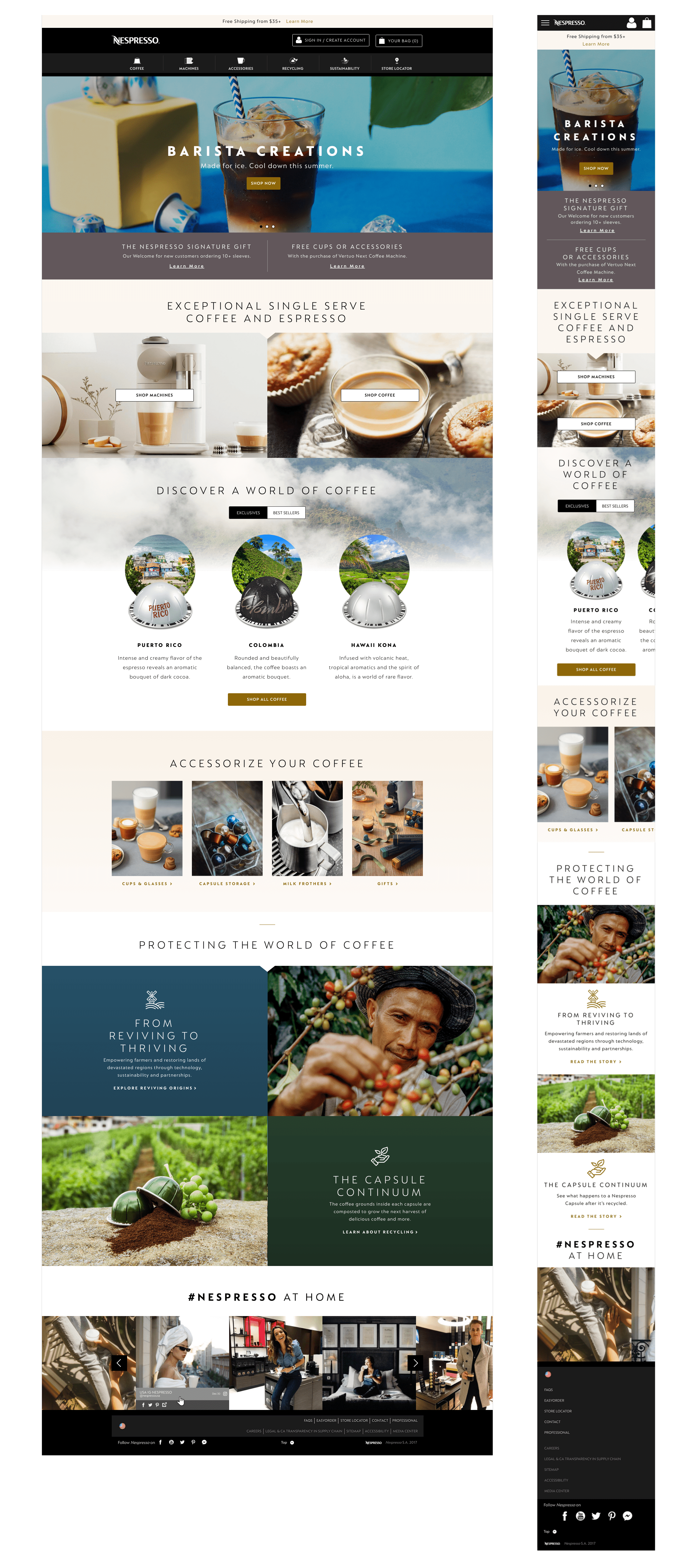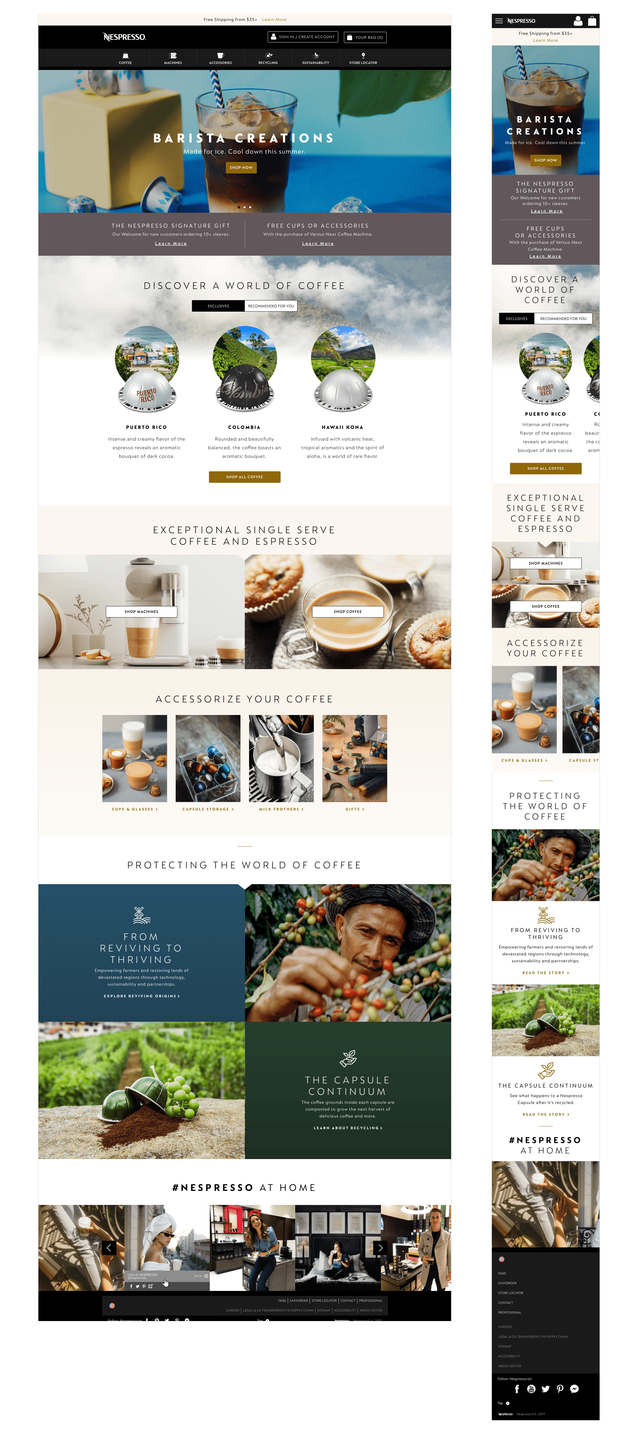 Create a captivating new Nespresso homepage experience that mixes brand voice, sustainability content, product highlights and seasonal promotional marketing to serve both new and existing customers alike.