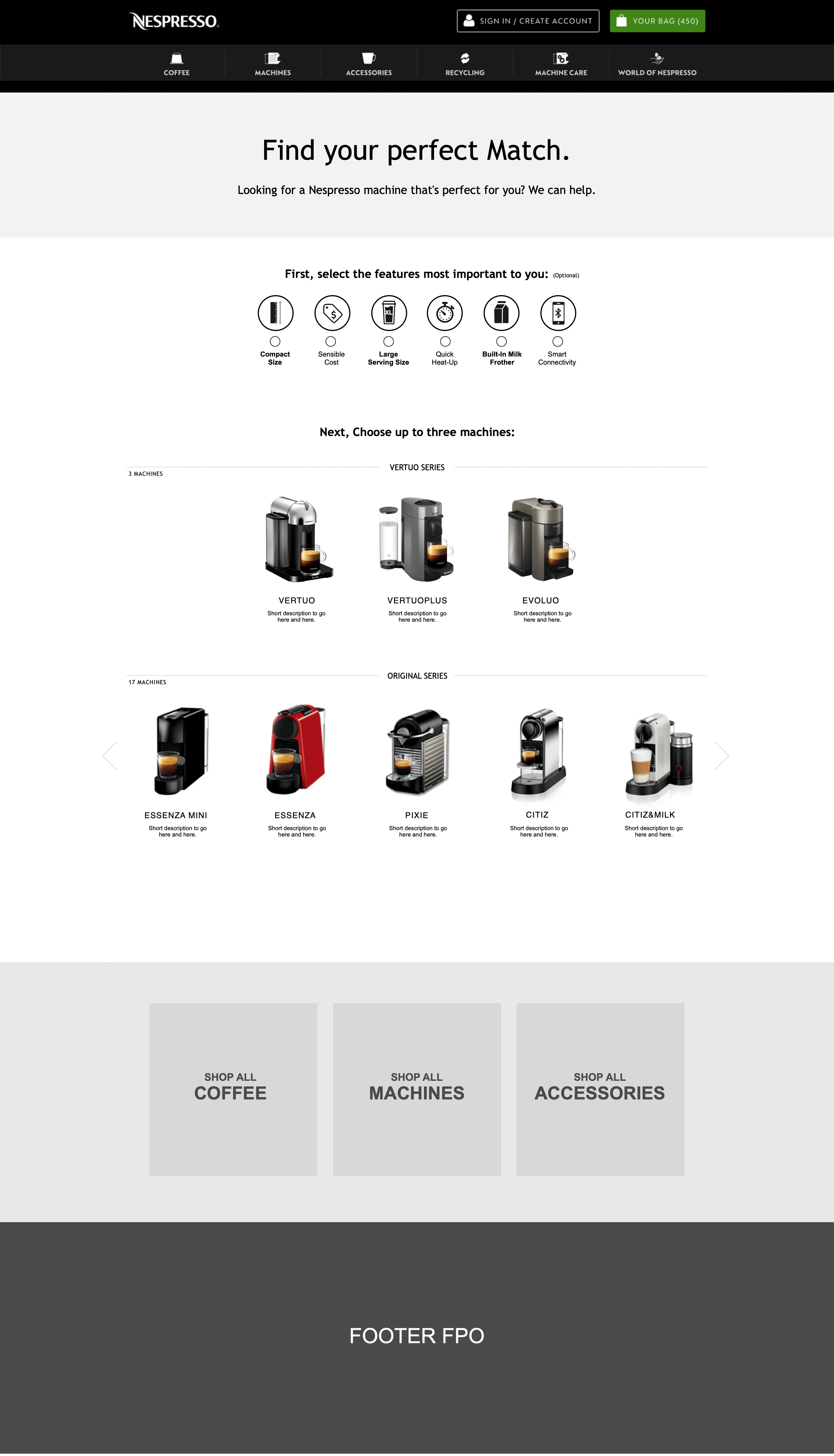 After some rounds of wire framing and refinement, I sent my designs over to our visual designer who brought them to life using Nespresso’s established style guide.